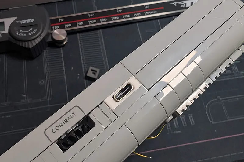 На данный момент проект ещё не полностью завершён. Например, кнопки управления пока не работают, так как не закреплены на печатной плате, но, по словам моддера, в будущем для них будет изготовлена специальная деталь на 3D-принтере, которая должна идеально вписаться в конструкцию Lego. Однако уже сейчас в устройство встроен порт USB-C для питания: